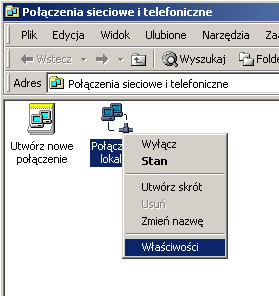 2. W oknie Połączenia sieciowe i telefoniczne kliknąć Połaczenia lokalne i wybrać Właściwości.