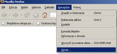 1. Należy wejść w zakładkę: Narzędzia i kliknąć na samym dole Opcje